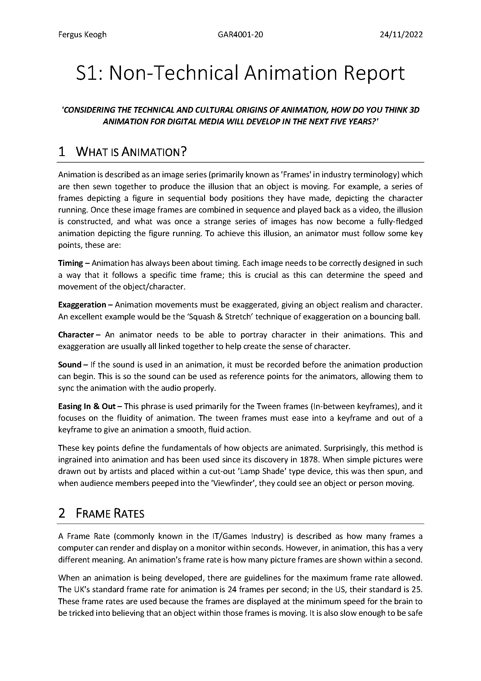 Non-technical Animation Report, Video Log of Practical Production Skills & Final 3D Animation